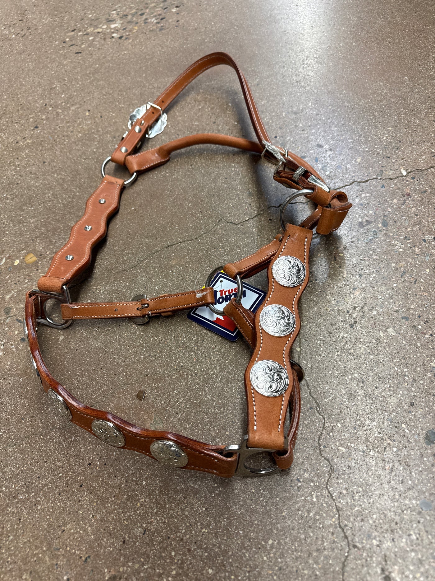 TKLH3549--Light Leather Show Halter Full size w/Conchos