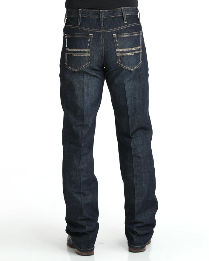 Hand sanding, whiskers, chevrons and knee starbursts team up with an 11.7 oz. cross-hatch rigid denim to achieve a deep rinse finish on the fan favorite Cinch White Label. Signature stitching in khaki and caramel accent the back pockets.