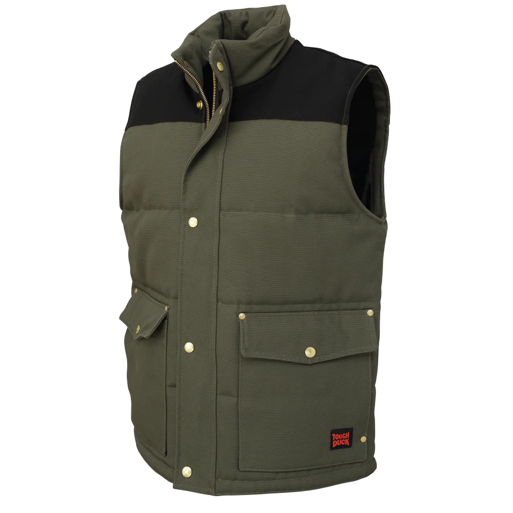 CLWV081-L-Olive Vest Tough Duck Woodsman