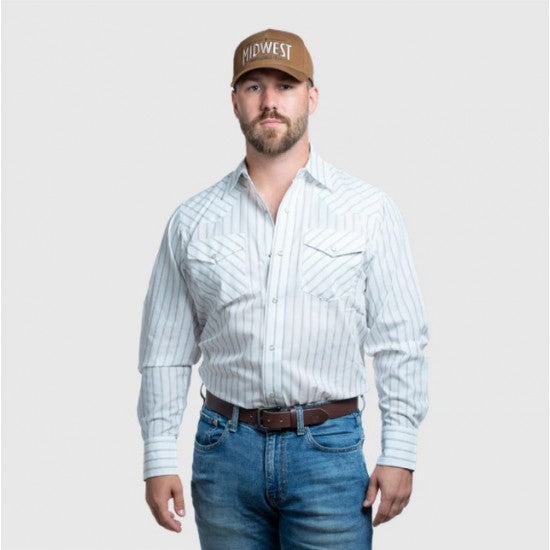 CLI30D01-LT-02 White MWG Mens L/S Snap Shirt - Stripe