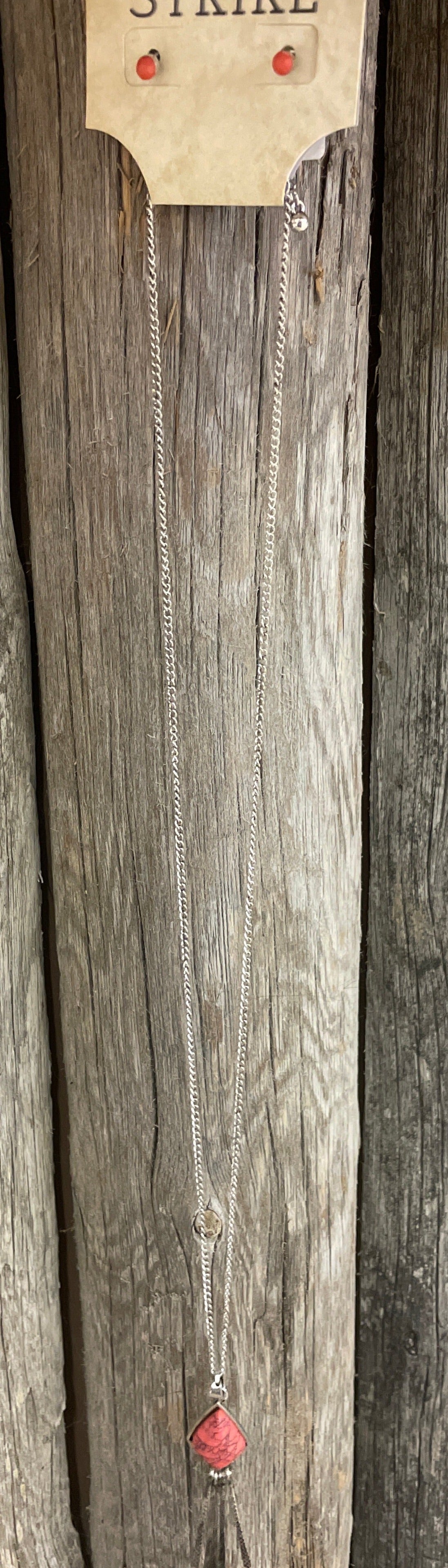BGDEN1016SBCO Jewerly Set- Antique Silver w/Diamond Stud-Pink