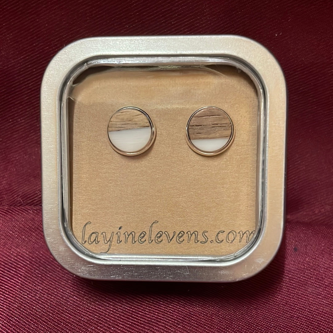 Stud earrings handmade by "Layin Elevens" Kristen Stuart.