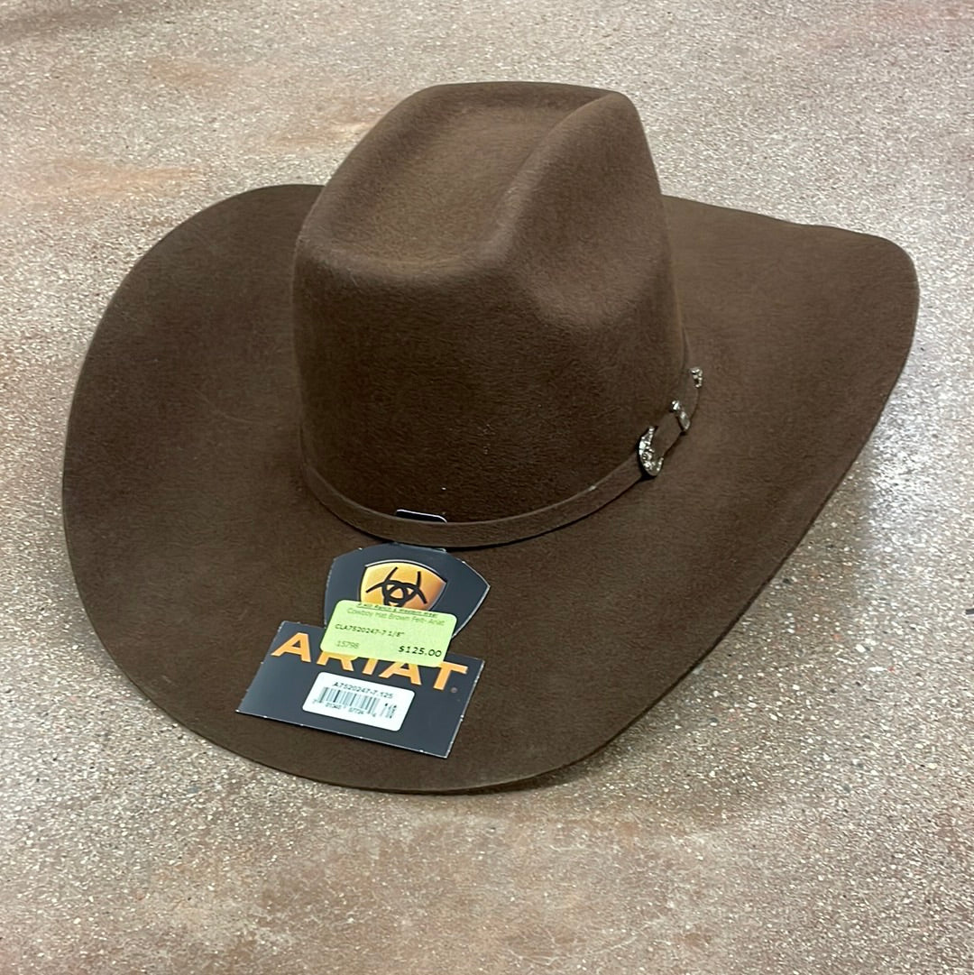 {"id":6944404996201,"title":"CLA7520247-7\" Cowboy Hat Brown Felt- Ariat","handle":"cla7520247-7-cowboy-hat-brown-felt-ariat","description":"\u003cp data-mce-fragment=\"1\"\u003eBrown felt Ariat cowboy hat with belt band.\u003c\/p\u003e\n\u003cp data-mce-fragment=\"1\"\u003eSize: 7\"\u003c\/p\u003e","published_at":"2022-09-24T11:20:42-06:00","created_at":"2022-09-23T11:15:04-06:00","vendor":"Paradise Hill Ranch and Western Wear","type":"Hats","tags":["Hats"],"price":12500,"price_min":12500,"price_max":12500,"available":false,"price_varies":false,"compare_at_price":null,"compare_at_price_min":0,"compare_at_price_max":0,"compare_at_price_varies":false,"variants":[{"id":40313551650921,"title":"Default Title","option1":"Default Title","option2":null,"option3":null,"sku":"38676","requires_shipping":true,"taxable":true,"featured_image":null,"available":false,"name":"CLA7520247-7\" Cowboy Hat Brown Felt- Ariat","public_title":null,"options":["Default Title"],"price":12500,"weight":454,"compare_at_price":null,"inventory_quantity":0,"inventory_management":"shopify","inventory_policy":"deny","barcode":"","requires_selling_plan":false,"selling_plan_allocations":[]}],"images":["\/\/paradisehillranchandwesternwear.com\/cdn\/shop\/products\/image_7be53bd6-9dd4-429a-a79c-d4a6bd93c998.jpg?v=1664040028"],"featured_image":"\/\/paradisehillranchandwesternwear.com\/cdn\/shop\/products\/image_7be53bd6-9dd4-429a-a79c-d4a6bd93c998.jpg?v=1664040028","options":["Title"],"media":[{"alt":null,"id":22784288751721,"position":1,"preview_image":{"aspect_ratio":0.999,"height":1081,"width":1080,"src":"\/\/paradisehillranchandwesternwear.com\/cdn\/shop\/products\/image_7be53bd6-9dd4-429a-a79c-d4a6bd93c998.jpg?v=1664040028"},"aspect_ratio":0.999,"height":1081,"media_type":"image","src":"\/\/paradisehillranchandwesternwear.com\/cdn\/shop\/products\/image_7be53bd6-9dd4-429a-a79c-d4a6bd93c998.jpg?v=1664040028","width":1080}],"requires_selling_plan":false,"selling_plan_groups":[],"content":"\u003cp data-mce-fragment=\"1\"\u003eBrown felt Ariat cowboy hat with belt band.\u003c\/p\u003e\n\u003cp data-mce-fragment=\"1\"\u003eSize: 7\"\u003c\/p\u003e"}