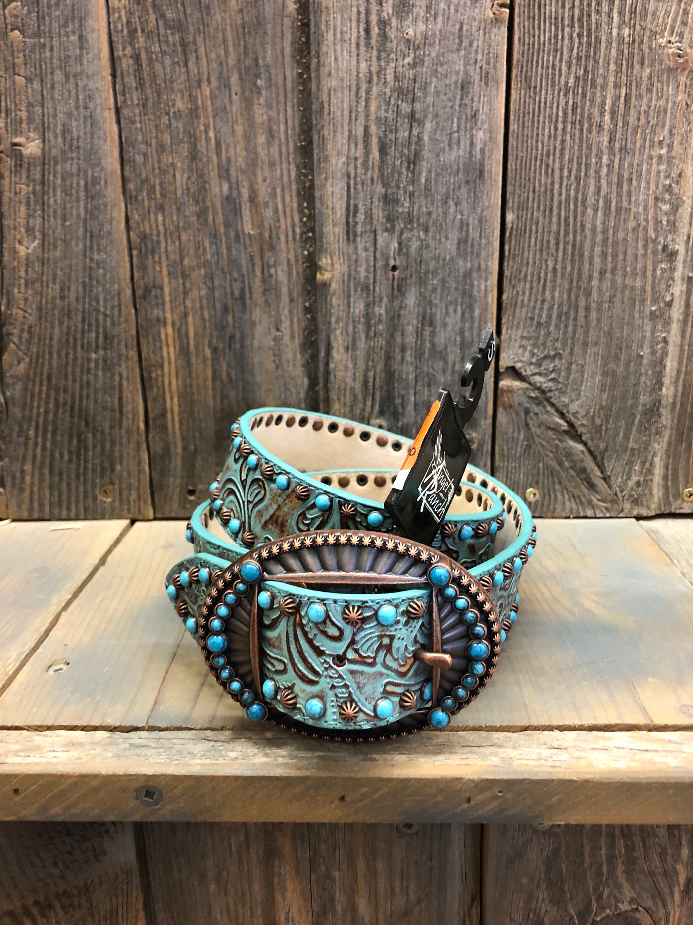 CLDA6314-L Belt Ladies Brown & TQ Metallic